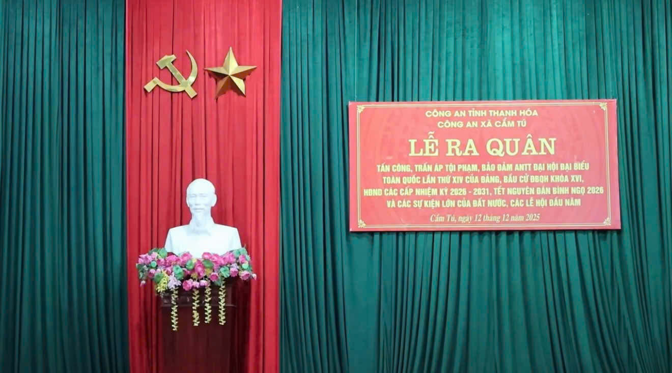 Thực hiện chỉ đạo của Bộ Công an, sáng 12/12/2025, Công an xã Cẩm Tú tổ chức Lễ ra quân thực hiện cao điểm tấn công, trấn áp tội phạm, bảo đảm an ninh, trật tự Đại hội đại biểu toàn quốc lần thứ XIV của Đảng, bầu cử Đại biểu Quốc hội khóa XVI, Hội đồng nhân dân các cấp nhiệm kỳ 2026 - 2031, Tết Nguyên đán Bính Ngọ 2026 và các sự kiện lớn của đất nước, các lễ hội đầu năm. Tham dự buổi lễ có đồng chí Phạm Minh Vũ - Chủ tịch UBND tỉnh; lãnh đạo UBMTTQ xã; lãnh đạo, chỉ huy, cán bộ, chiến sĩ các đội nghiệp vụ công an xã và đại diện lực lượng tham gia bảo vệ ANTT ở cơ sở…